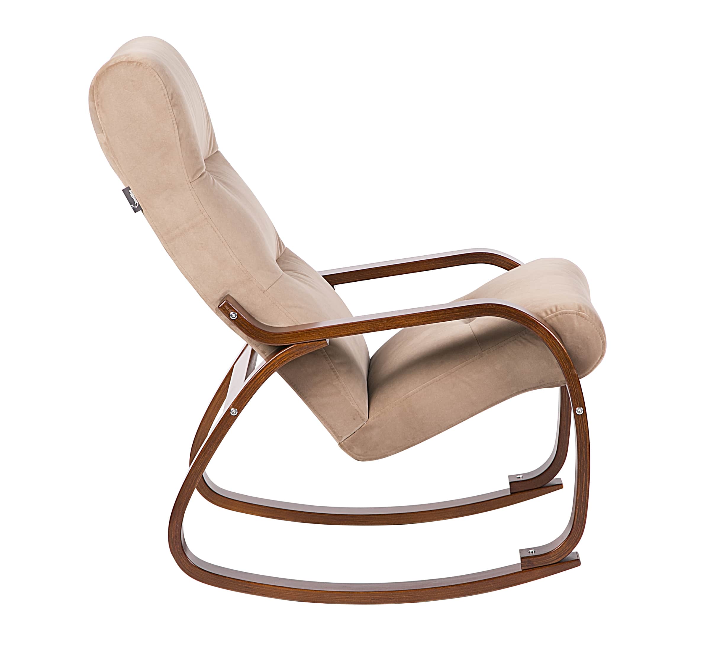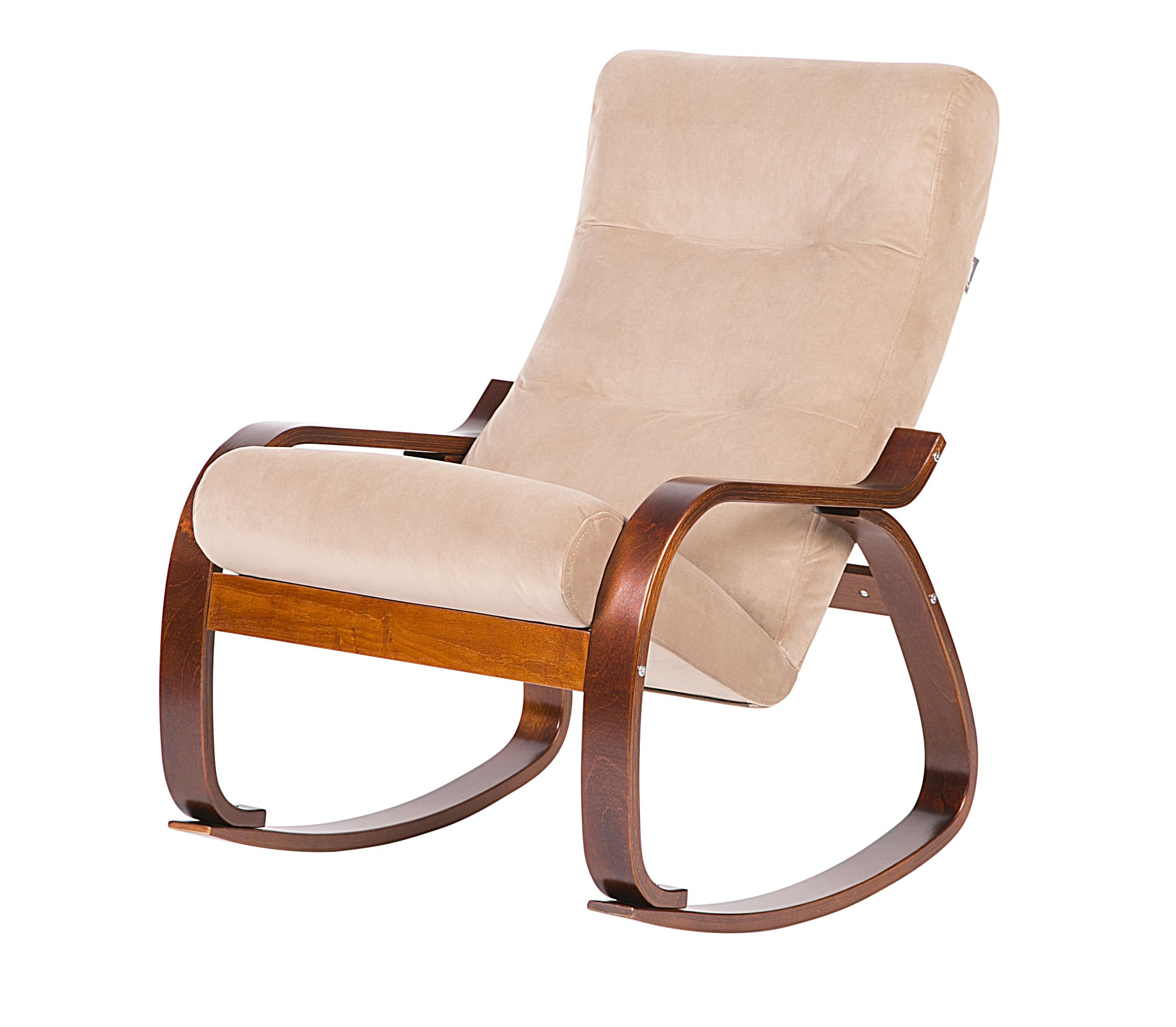 Кресло-качалка с тканевой обивкой цвета Перламутр и каркасом цвета Вишня