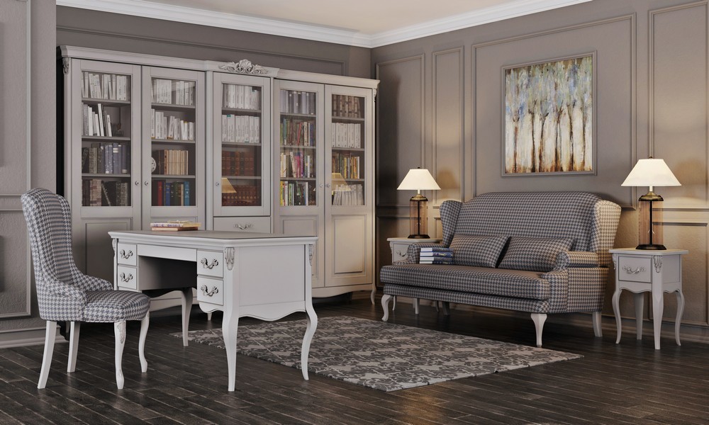- Отделка: Серо-бежевый с серебряной патиной