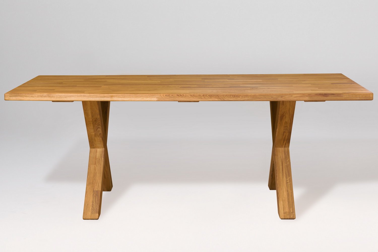 Обеденный стол «Декстер 2» изготавливается из долговечного природного материала – массива дуба. Стол отличается простым и стильным дизайном, а, главное, вместительностью – за ним может разместиться до 10 человек. Еще одно преимущество – устойчивые крестообразные опоры.