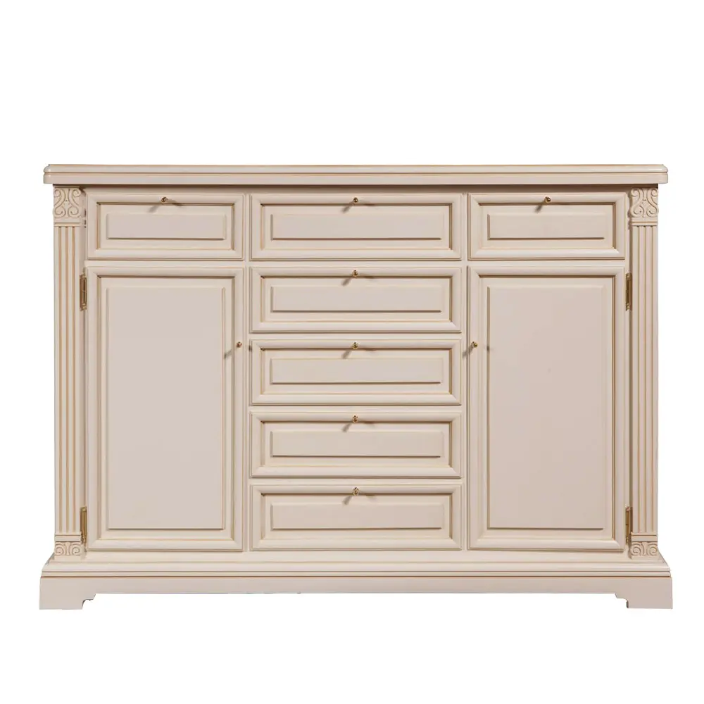 В тумбе имеется семь выдвижных ящиков и два распашных фасада